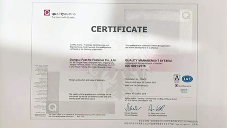 FASTFIX is committed to continuous improvement of the quality and service, by carrying out extensive functional and controlled testing of all products in every batch. From raw materials to final products, processes are in strict accordance with ISO9001 and IATF16949.